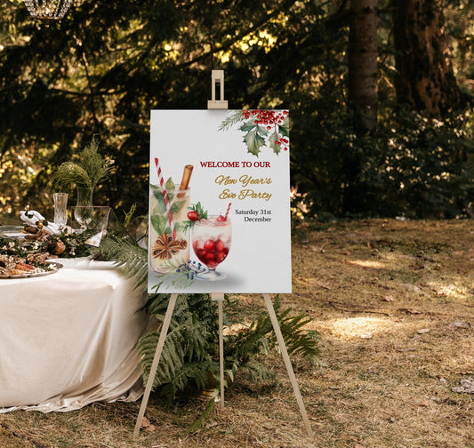 2024 New Year Cocktail Party Welcome Sign instant download, Holiday Party, Edit with TEMPLETT, Cheers to the New Year, adult party, XM0019