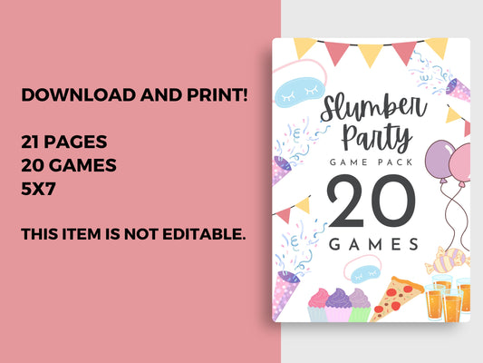 • 20 sleepover party games, Printable Game Girl Slumber Party, Teen Birthday Games, Pajama Party Instant Download, Birthday Sleepover, PDF