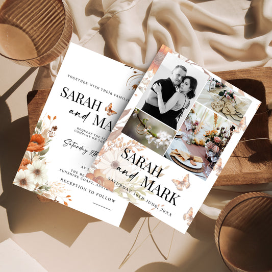 Wedding Editable Photo Invitation, Terracorra Flowers Wedding Stationery, Easy to edit template, Bridal fall garden party, Custom DIY, WM003