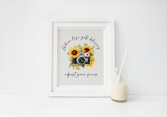 When Life Gets Blurry Adjust Focus personalized photographer art, 8x10 printable camera quote, Vintage Camera with boho florals, watercolor