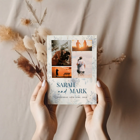 Wedding Editable Photo Invitation, Dusty Blue Flowers Wedding Stationery, Easy to edit template, Bridal garden party, Custom DIY, WM006