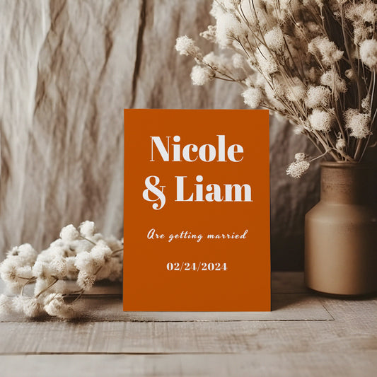Burnt Orange Retro Wedding Invitation Template,Modern Minimalist Editable Invite, Bold color, Edit with TEMPLETT, 4x6, 5x7, Evite BW001