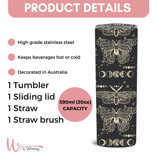 Dark celestial,Metaphysical Tumbler, celestial sun, witchy tumbler, witch tumbler, aesthetic tumbler, butterfly tumbler, celestial moon,
