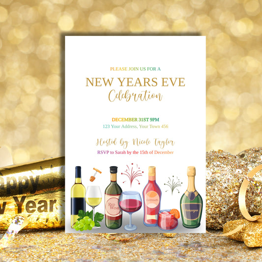 Customisable new year invite, holiday cocktails let's party invite, personalised party invitation, NYE Electronic invite, Modern party XM022