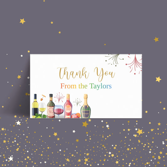 Customisable new year thank you card, holiday cocktails let's party, personalised card, NYE party thank you card, Modern party XM022