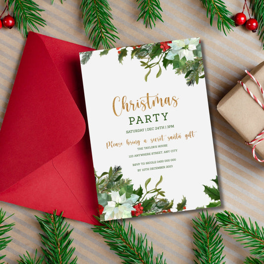 Editable Christmas party digital template, Downloadable mistletoe party invite, Minimalistic Christmas printable, Edit with TEMPLETT, XM011