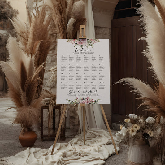 Pink Lily Wedding Seating Plan, Large Sign, Spring Wedding, Gorgeous floral wedding sign, flower clip art, foliage, outdoor nuptials WM002