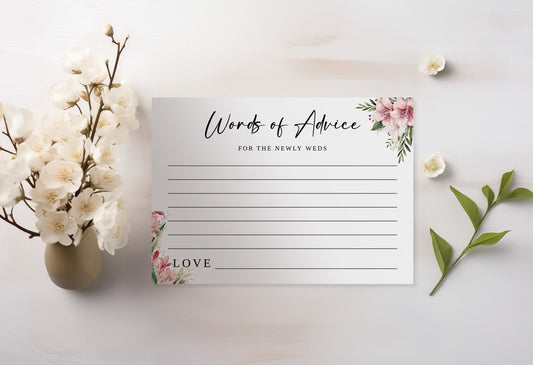 Pink Lily Words of advice card, Spring Wedding, Gorgeous floral wedding, pink flowers, foliage, outdoor nuptials, 5x7 customisable, WM002