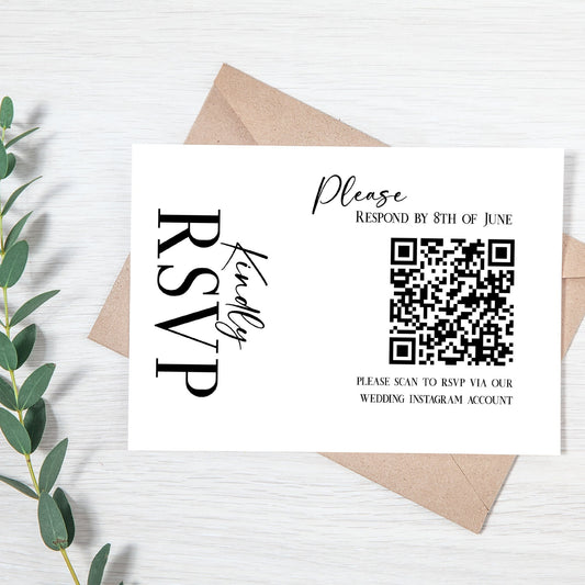Modern QR Code RSVP Card, Wedding response card, Minimalist reply card, cusomtizable template, Romantic minimal design rsvp card, Party rsvp