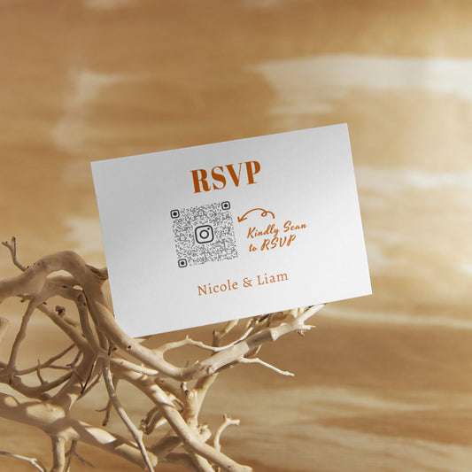 Retro Burnt Orange Wedding RSVP card with QR Code Template ,Modern Minimalist Editable, Bold color, Edit with TEMPLETT, fall wedding, BW001