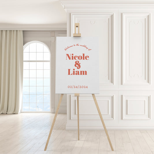 Bold Retro Terracotta Wedding Welcome Sign Template, Modern Minimalist Editable Large Sign Details Invite, orange, Edit with TEMPLETT, BW002