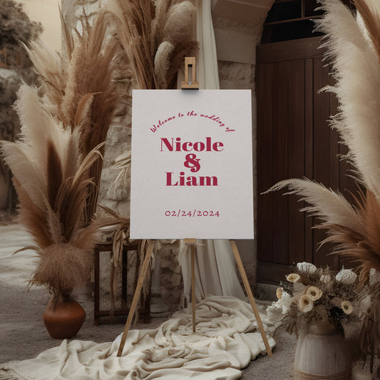 Bold Viva Magenta Wedding Welcome Sign Template, Modern Minimalist Editable Large Sign Details Invite, orange, Edit with TEMPLETT, BW003